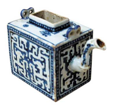 《收藏家》1994年第6期,刊登了楊靜榮先生的一篇文章,題為"《說陶》一書的幾點失誤".作者在對書中宋代官窯(獸犬耳方壺注疏時寫道:"陶瓷受自身材料的限制,如欲設計方形造型,在成形上有一定難度。宋、元、明時期,瓷器中沒有方形的,直到清康熙時,陶瓷工藝逐漸成熟,方器才開始流行。故此方壺只能是清代產品。"楊先生明確地指出方器出現(xiàn)于清代?v觀我國陶瓷制作工藝的歷史,大體經歷了手制、手制與慢輪修正結合、輪制三個發(fā)展過程。三種制作工藝是在不同歷史時期出現(xiàn)的,然而,三種不同制作工藝是不可截然分割開的。新的制作工藝的出現(xiàn),并不意味著舊工藝的消亡,而是使制作工藝更臻完美、制作效率更高。而舊的制作工作仍然存在,作為新工藝的補充。即使是當代,瓷器成型工藝已進入機械化、自動化,而手制作為機械化不及之處的補充,它仍然存在。