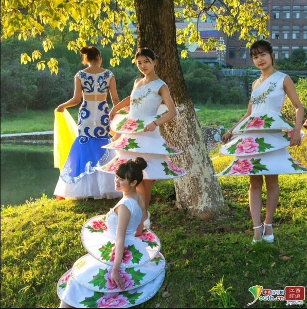中國青年網(wǎng)景德鎮(zhèn)5月7日電(記者 戴利斌)“白如玉,明如鏡,薄如紙,聲如磬”,景德鎮(zhèn),千年窯火不斷,陶瓷文化百花齊放。近日,景德鎮(zhèn)陶瓷學院大學生禮儀團的女大學生們,通過自己設計制作的陶瓷服飾展示了瓷都典雅素凈的青花瓷、晶瑩剔透的玲瓏瓷、五彩繽紛的顏色釉瓷和古樸清麗的粉彩瓷的“四大名瓷”特色。大學生們還穿上自己親手制作的陶瓷服飾在校園內(nèi)拍攝了一組陶瓷服飾寫真集,吸引了不少眼球的關注。