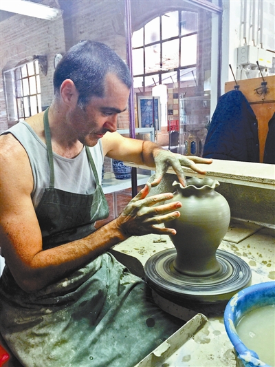 繪圖、上色、拉坯……手工作坊里,幾位老手藝人在靜靜工作