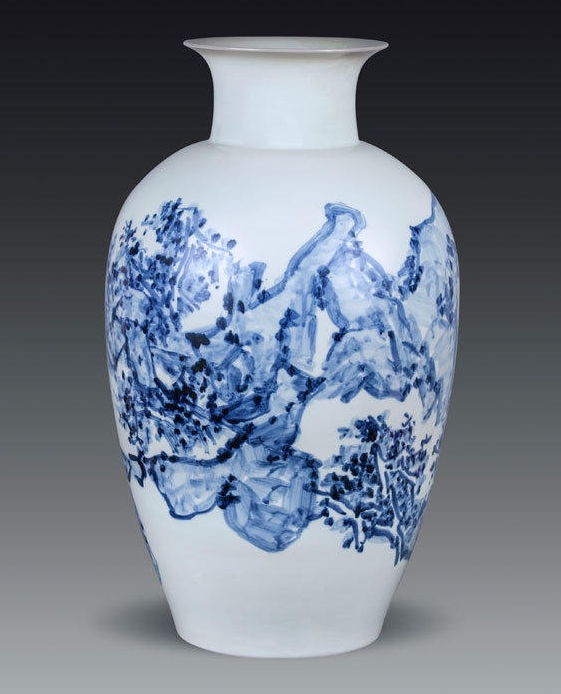 易向前介紹,在器物上表達(dá)繪畫思想有別于在紙本上的表達(dá),所以水墨藝術(shù)家在做到一定的階段時(shí)都會(huì)學(xué)習(xí)畫瓷。在瓷器上作畫的過程中他的體會(huì)是把握當(dāng)下藝術(shù)語境的問題,在語境的表達(dá)上會(huì)站在當(dāng)下的角度在瓷瓶上作畫。