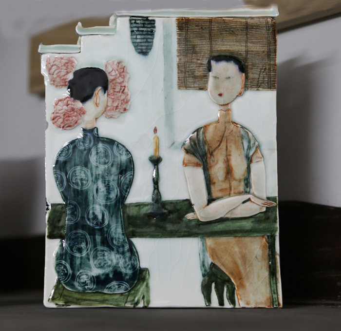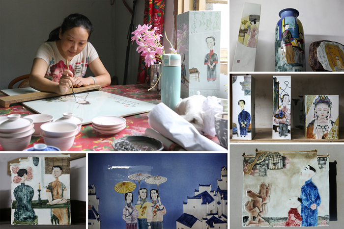 景德鎮(zhèn)陶瓷藝術家梁永紅的釉下五彩綜合裝飾陶瓷藝術品,將亮相第三屆濟南藝術品博覽會,成為一大看點。她筆下的陶瓷作品,以江南建筑為陶瓷造型,營造了濃郁的環(huán)境氣息,工筆淡彩地將一襲旗袍的江南窈窕淑女融入瓷瓶釉色之中,訴說著江南水鄉(xiāng)煙雨蒙蒙的前世今生和女子溫婉柔順、嫻靜端莊的詩情畫意。畫面中既讓人欣賞到了瓷器與畫技的精髓之美,也讓人隱約地感受到了一種恬靜的淡淡鄉(xiāng)愁。
