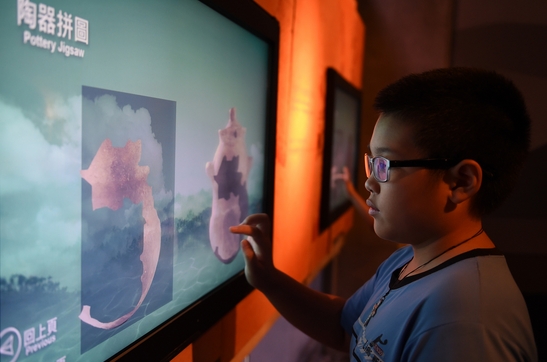 8月1日,一名小朋友在鶯歌陶瓷博物館進(jìn)行陶瓷拼圖游戲。