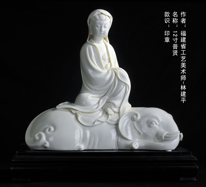 普賢菩薩的坐騎是靈牙仙的六牙白象。與騎乘獅子的文殊菩薩,同為毗盧遮那佛之脅士,合稱為“華嚴三圣”。白象代表愿行殷深,辛勤不倦;六牙,表示六波羅蜜──布施、持戒、忍辱、精進、禪定、慧智。佛教稱六牙白象是菩薩所化,以表威靈,象征“愿行廣大,功德圓滿”。