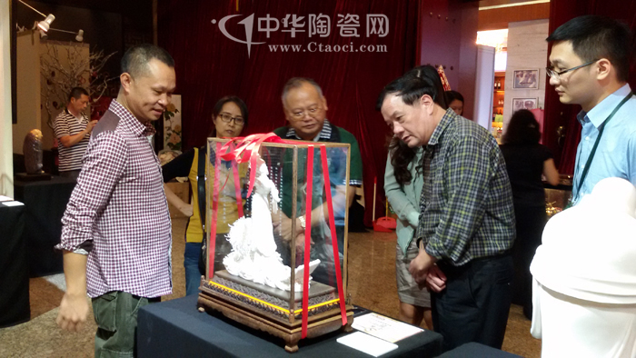 本次展覽,福建省陶瓷藝術大師蘇志強做為特約嘉賓,并參加德化瓷研討化,向廣大來賓收藏愛好者講解德化陶瓷,并且蘇志強帶來了其代表作品《大地飛歌》、《雀之靈》、《圓滿如意》等代表作品。