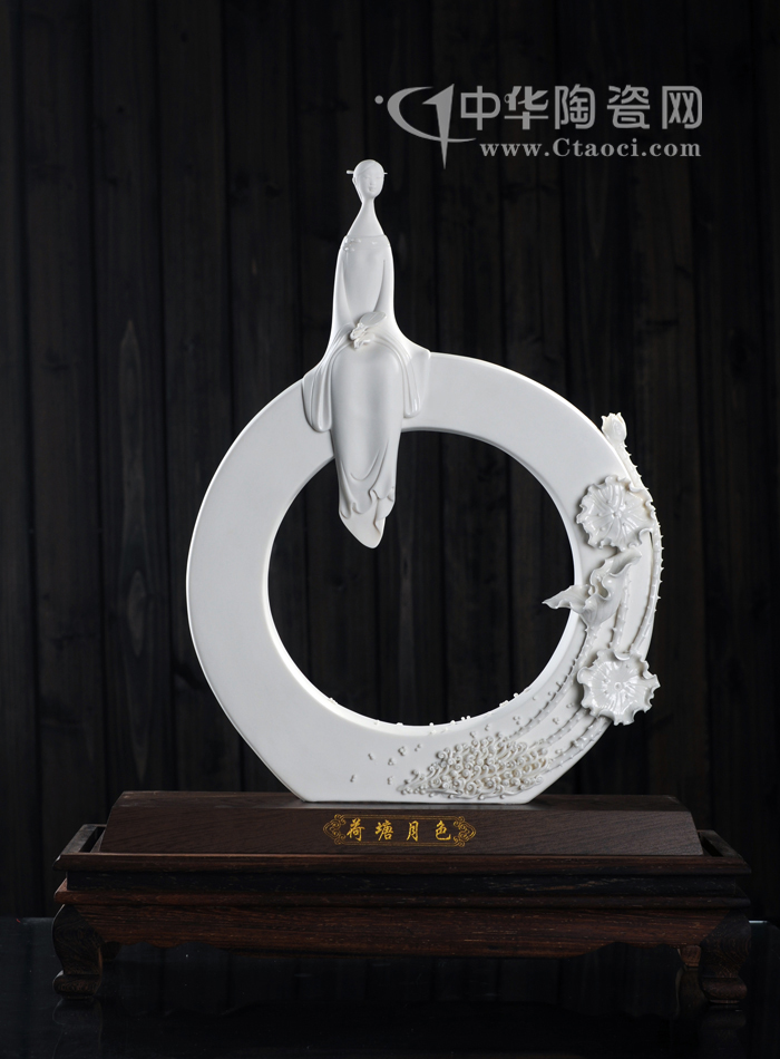 簡介:首屆福建省陶瓷產(chǎn)品設(shè)計(jì)職業(yè)技能競賽三等獎(jiǎng),林彬彬師承中國陶瓷藝術(shù)大師蘇獻(xiàn)忠,整件作品安寧靜謐,以簡潔卻很有視覺沖擊力的鏤空大月亮為主體,點(diǎn)綴上幾朵亭亭的清荷,美麗的姑娘恬靜淡然地端坐在月亮之上,靜靜地聆聽萬物生靈溫婉悠揚(yáng)的呢喃,又仿佛攜帶著一抔愁緒遙寄遠(yuǎn)方。