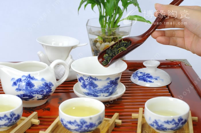 瓷質(zhì)茶具傳熱不快,保溫性能好,而且不會與茶發(fā)生化學(xué)反應(yīng),用來泡茶能夠很好地呈現(xiàn)出茶的色、香、味,實用性強。瓷質(zhì)茶具的造型豐富、美觀,裝飾精巧,圖案清新,具有藝術(shù)欣賞價值。在購買瓷質(zhì)茶具時,應(yīng)考慮其實用性、藝術(shù)性兼具。