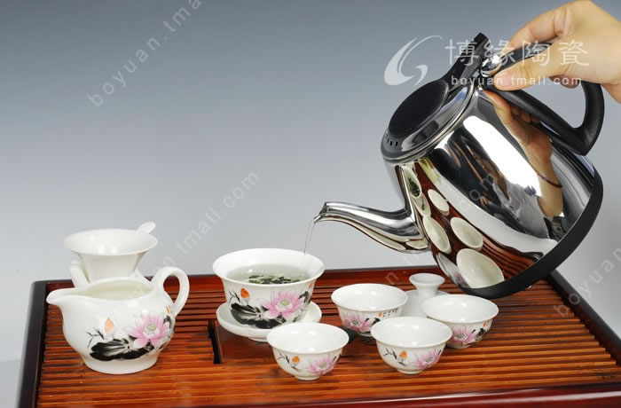 經(jīng)過“一看二聽三摸”之后,基本上可以斷定瓷質(zhì)茶具的優(yōu)劣。除此之外,還可以根據(jù)個人的喜好來選擇不同器形和紋飾的茶具。