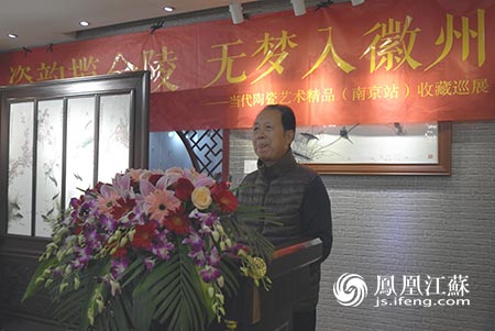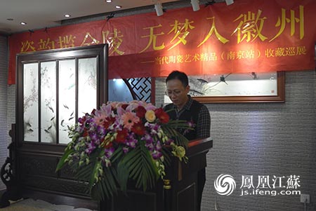 由南京市安徽商會、《文化徽商》全國理事會、 九三學(xué)社江蘇畫院主辦,江西景德鎮(zhèn)瓷印象有限公司承辦,蘇寧易購獨家冠名的“瓷韻攬金陵,無夢入徽州”當(dāng)代陶瓷藝術(shù)精品(南京站)收藏巡展于2015年12月11日在九三學(xué)社江蘇畫院隆重展出,南京安徽商會常務(wù)副會長、南京廣廈集團董事長沈長明先生、南京知何堂文化投資有限公司董事長周峰等人參加了開幕式并發(fā)表致辭。