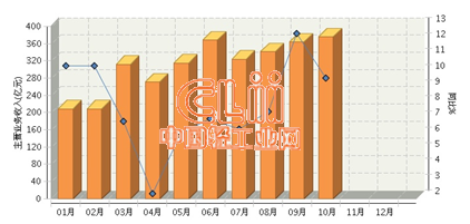 圖 2015年1~10月全國陶瓷行業(yè)月度主營業(yè)務(wù)收入及同比