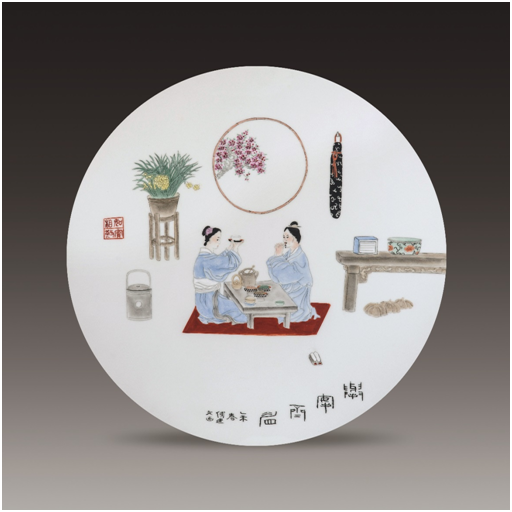 江西省高級工藝美術(shù)師付建文作品:50×50粉彩瓷板 陸羽品茶