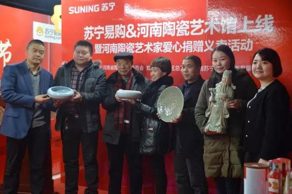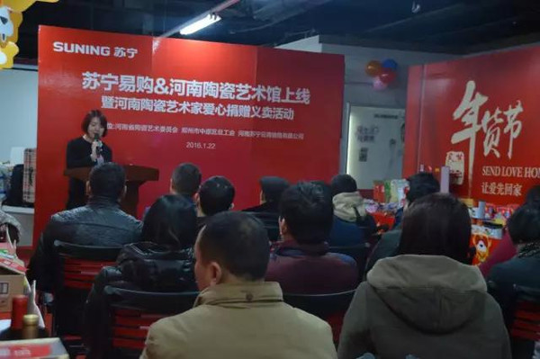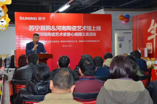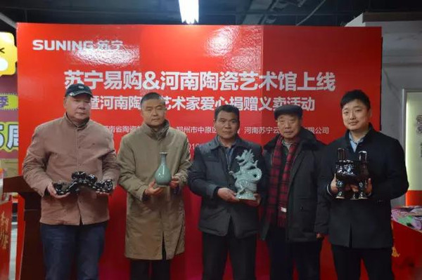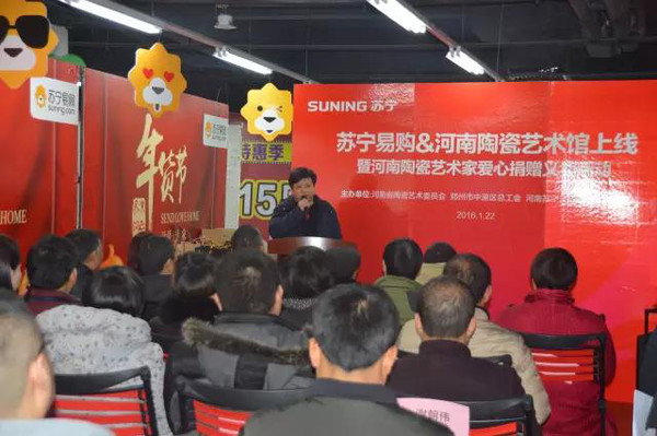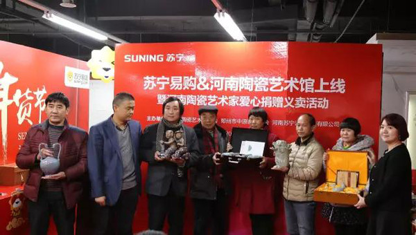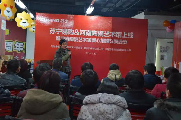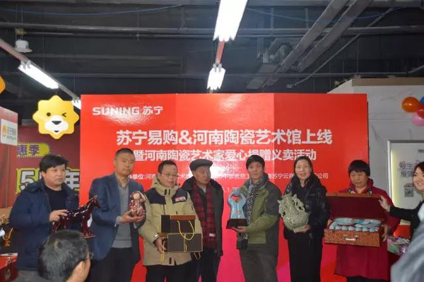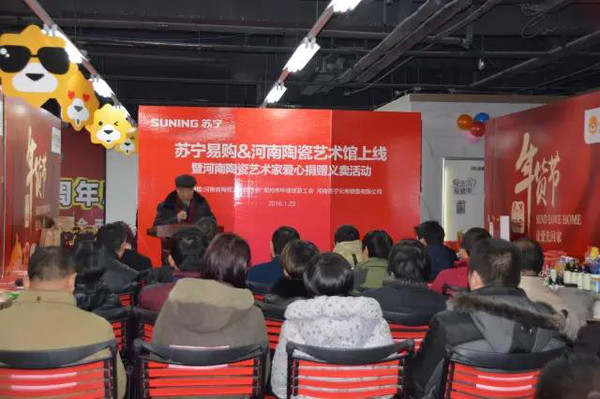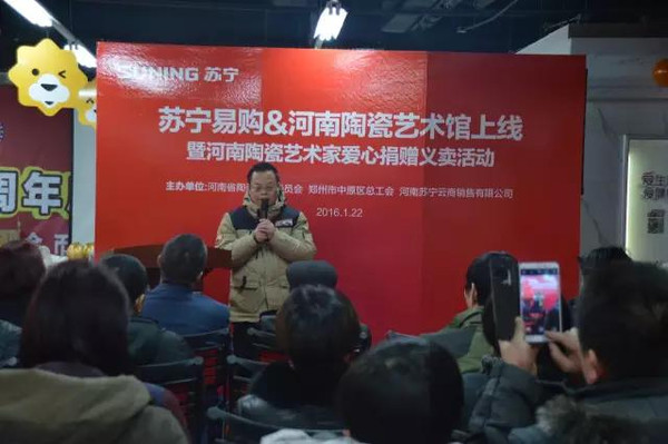 河南省陶瓷藝術(shù)委員會、鄭州市中原區(qū)總工會、河南蘇寧云商銷售有限公司召開新聞發(fā)布會宣布:1月29日,河南省陶瓷藝術(shù)家愛心捐贈義賣活動將在鄭州二七廣場東南角的蘇寧易購云店舉行。同時,蘇寧易購? 河南陶瓷藝術(shù)館宣告上線,今后人們可以輕點鼠標進蘇寧易購網(wǎng)上商城,賞河南名窯名家作品,再點鼠標可輕松下單。