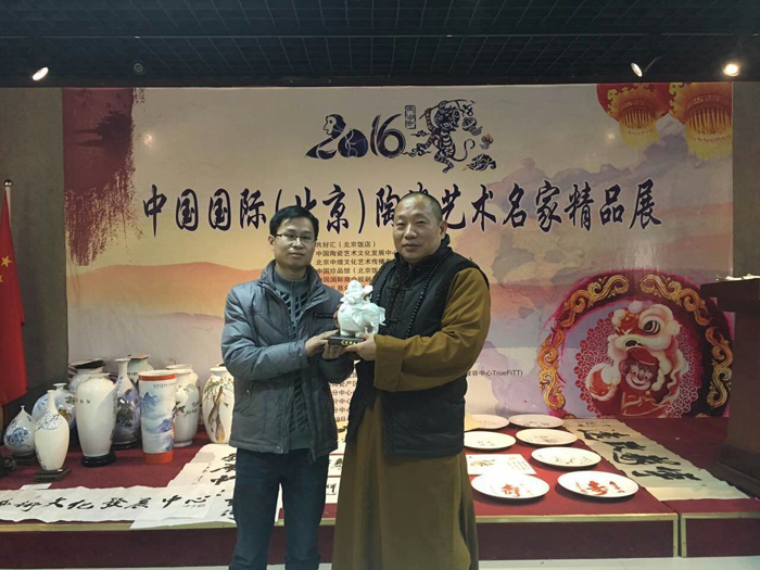 由中國陶瓷藝術(shù)文化發(fā)展中心和共好匯(北京飯店)聯(lián)合主辦,中華陶瓷網(wǎng)、中國國際商會投融資委員會等協(xié)辦的2016年中國國際(北京)陶瓷藝術(shù)名家精品展于2016年1月19日至22日在北京飯店展出,中華陶瓷網(wǎng)及德化縣博緣陶瓷文化有限公司組織當代德化陶瓷名家鄭志德、顏松柳、蘇杜村、李甲棧、邱玫瑰、陳戴茹、張祥琦、劉育發(fā)、李錦峰、林建平、林彬彬、鄭清海、陳清宜、曾慶成、陳廷實、王順、陳建陽等藝術(shù)家共計近百件作品展出。