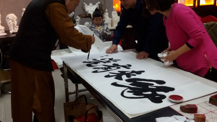 圖為溈仰宗第十代傳人凈修法師為博緣陶瓷題字