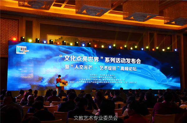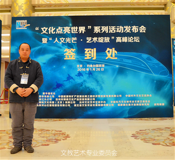 2016年1月26日,由新華網(wǎng)主辦,中國東方文化研究會(huì)文教藝術(shù)專業(yè)委員會(huì)等單位協(xié)辦的“文化點(diǎn)亮世界”系列活動(dòng)發(fā)布會(huì)暨“人文光芒•藝術(shù)綻放”高峰論壇在北京釣魚臺(tái)國賓館芳華苑隆重舉行。
