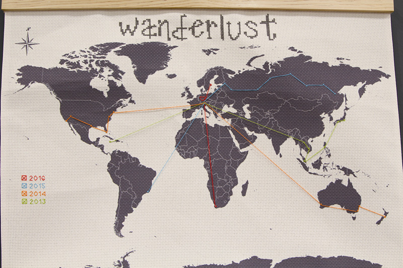 其次,產(chǎn)品強(qiáng)調(diào)消費(fèi)者參與創(chuàng)作的體驗(yàn)。一幅針線織出的、掛在家里墻上的世界地圖,可以供消費(fèi)者自己添加“旅行足跡”,用不同顏色的一針一線穿插,勾勒出只屬于自己的成長(zhǎng)歷程。同樣的地圖類產(chǎn)品,還有立體的地球儀,旅行者每去過(guò)一地,便可在地球儀上按插入標(biāo)志。
