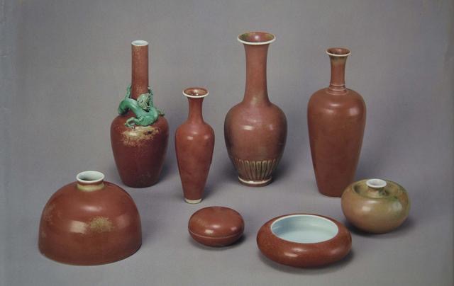 除此之外,迄今為止我們?cè)贈(zèng)]有在拍賣會(huì)見過其它的像這樣一套一套出來的豇豆紅瓷器了,零星出現(xiàn)的這個(gè)太白尊、鏜鑼洗還是可以買到的。