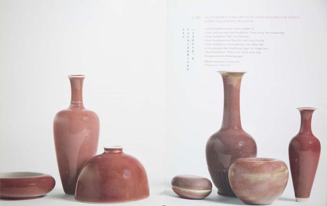 另一套在拍賣市場(chǎng)上出現(xiàn)的豇豆紅瓷器,就是2011年來自著名的瑞士玫茵堂的珍藏,可惜這一整套里面它只有七件。當(dāng)時(shí)他在香港蘇富比舉行了一系列的專場(chǎng)拍賣會(huì),他的首場(chǎng)就出現(xiàn)了這一整套的豇豆紅瓷器,這七件在2011年的估價(jià)已經(jīng)到了五千萬至七千萬港元,而且只有七個(gè)器型,還不是八大碼,所以我們看到這個(gè)豇豆紅的收藏是多么的困難。這七件跟徐展堂先生的相比,它的釉色明顯有差距,品相和釉色都不是十分的理想,所以這一套最后也流拍了。