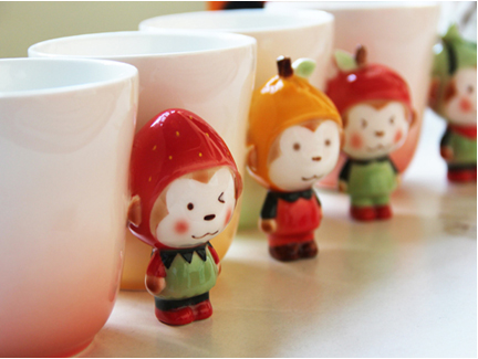 凡家陶瓷,以樸實的生活追求,生動有趣的卡通形象與不拘一格的泥塑相結合,給人帶來一種的優(yōu)雅不羈的獨特感受。水果猴寶杯系列,卡通新型設計動物陶瓷杯, 全新噴彩手繪技術,軟化妹紙心的萌萌模樣,不僅僅是個杯子,舒適好拿的握柄,可愛動物造型給你的閑暇時光配上好心情。