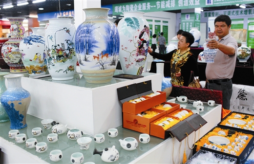“陶博會”展覽現(xiàn)場,來自全國各地的陶瓷產(chǎn)品琳瑯滿目。