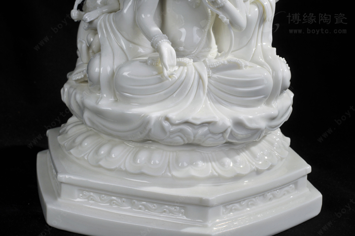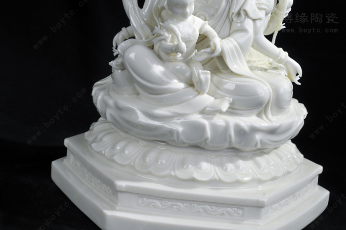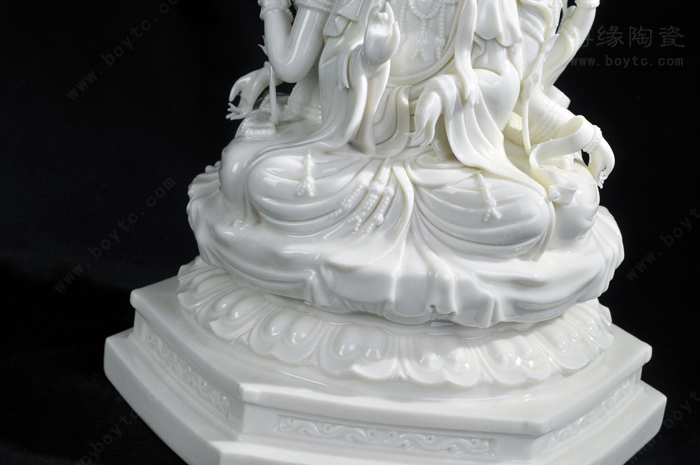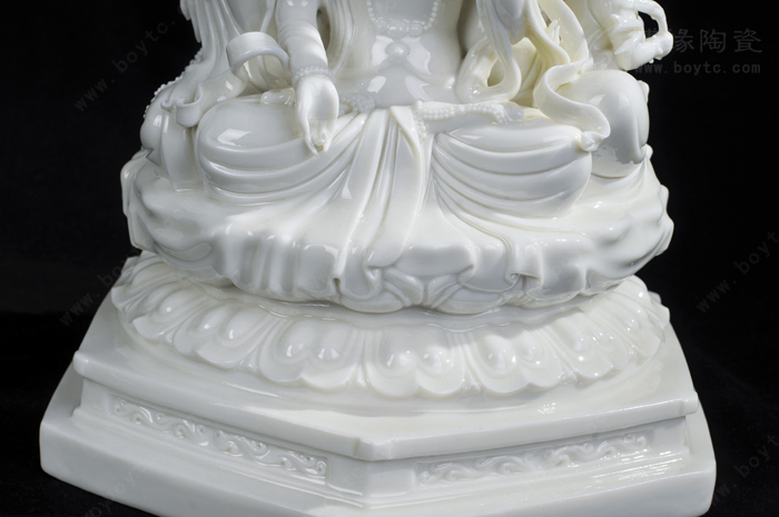 例二:“玉白釉瓷”:以前“德化白”、“中國白”完全靠瓷土好發(fā)色,最近新研發(fā)的“玉白釉”的發(fā)明,改變了長期以來中國白的傳統(tǒng)概念,以創(chuàng)新方式來表達(dá)一樣中國白,和傳統(tǒng)的“中國白”相比,用“玉白釉”就可以不用很好的瓷土也能表達(dá)的非常溫潤如玉、釉色肥厚、耐與琢磨的感覺,有著典型的“豬油白“、“建白”、“象牙白”特征,跟高端的“中國白”很好的瓷土相比,不僅節(jié)省了很多成本,也創(chuàng)造了一種新的陶瓷藝術(shù)美。