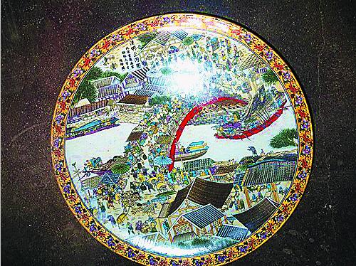 “梨花風(fēng)起正清明,游子尋春半出城。日暮笙歌收拾去,萬株楊柳屬流鶯。”這是南宋詩人吳惟信的《蘇堤清明即事》,宋朝的繁華從中可窺一斑。當(dāng)然,宋朝的民俗風(fēng)還要看北宋畫師張擇端的《清明上河圖》。圖4是一只清代乾隆年間的琺瑯彩盤,直徑35.1厘米,圖案便是“清明上河”之再現(xiàn)。只見紅綠鮮明,房屋錯(cuò)落有致,人物并行不悖,清晰可見,真是美輪美奐。左上角有“清明上河圖,大宋宮廷畫家、翰林大學(xué)士張擇端”,底部有“大清乾隆年制”的字樣。