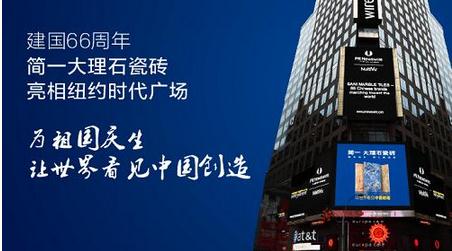 中國(guó)建國(guó)66周年,2015年國(guó)慶簡(jiǎn)一攜手格力、華為、綠地等中國(guó)品牌亮相紐約時(shí)代廣場(chǎng)。而在倫敦希思羅機(jī)場(chǎng)、巴黎戴高樂(lè)機(jī)場(chǎng)、德國(guó)法蘭克福機(jī)場(chǎng)、美國(guó)舊金山機(jī)場(chǎng)等世界樞紐也活躍著簡(jiǎn)一的品牌宣傳。