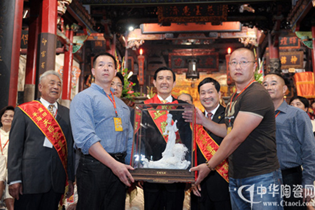 《大地飛歌》成為“2008年中國—東盟博覽會指定國禮”,贈送給東盟各國國家領(lǐng)導(dǎo)人,并載入東盟史冊;2010年泉州霞洲媽祖宮赴臺灣臺南大天后宮祭奠之時,德化瓷塑作品《大地飛歌》被作為禮品贈送給國民黨主席馬英九。