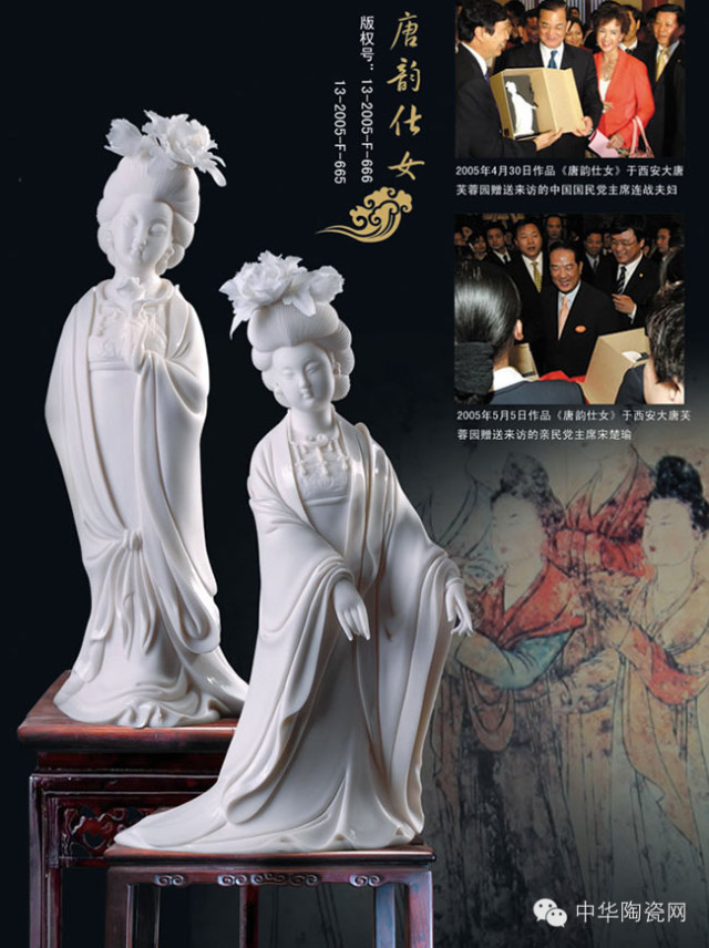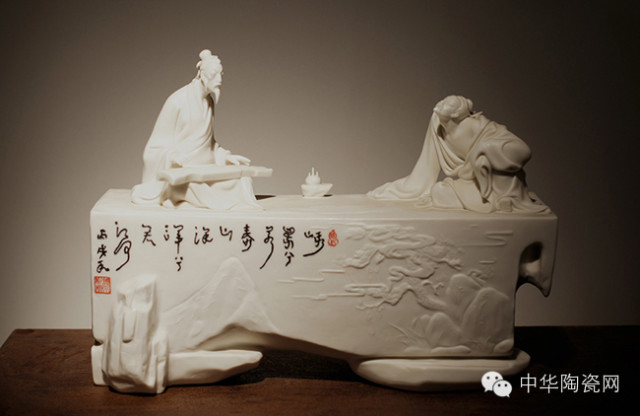 初次見到顏松柳,斯文、從容,微笑中散發(fā)著平和恬淡的儒雅。作為德化瓷雕的中堅力量,其作品在傳統(tǒng)工藝的基礎(chǔ)上加以豐富的想象力,極富創(chuàng)意,韻味十足,備受市場青睞。這位瓷壇后起之秀不但引起業(yè)界的關(guān)注,還曾榮獲“中國收藏家喜歡的陶瓷藝術(shù)大師”的榮譽稱號。他的作品《春風(fēng)得意馬蹄急》收藏于中國美術(shù)館、英國珍寶博物館;《一葦渡江》收藏于英國珍寶博物館、福建博物院。值得一提的是,與他人合作的大形組雕《召見使節(jié)》和《唐韻仕女》被西安市政府選為珍貴禮品贈予國民黨榮譽主席連戰(zhàn)和親民黨主席宋楚瑜。