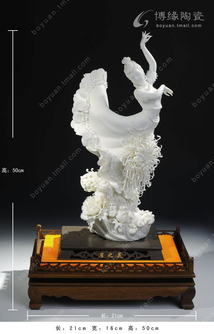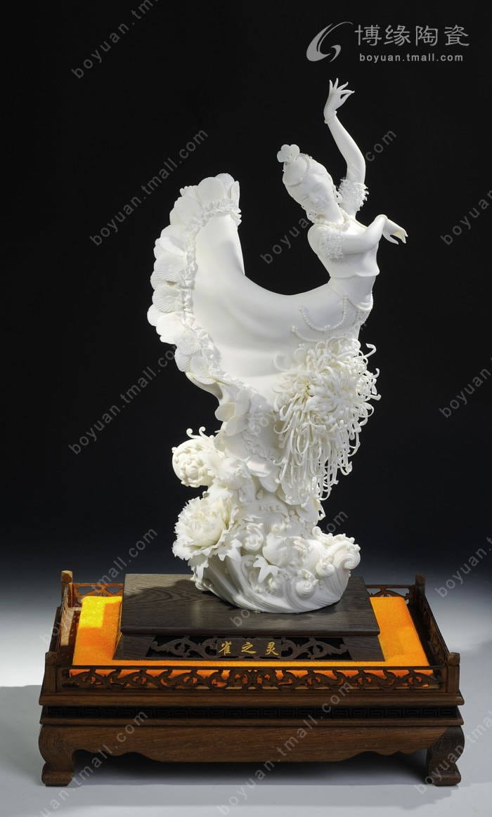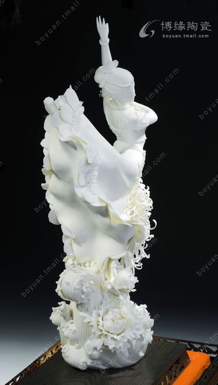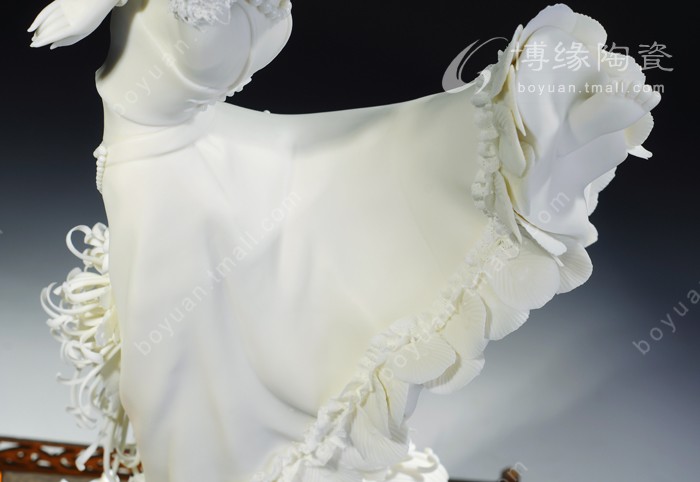 蘇志強所創(chuàng)作的作品,件件精美,靈活的雙眼、纖細的雙手、精致的菊花、牡丹等,不禁令人感嘆這精湛的工藝,鬼斧神工、妙趣橫生!風華正茂的少女,在蘇志強的瓷刀下更是惟妙惟肖,或利用舞蹈展現(xiàn)女性的靈性;或透過勞動體現(xiàn)女性的賢德淑良;或通過吹拉彈唱來演繹女性的空靈……