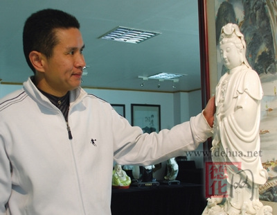 “我現在藏有德化近代名家作品有數百件,另外還有上百件上世紀德化廠集體創(chuàng)作的各類作品,這些作品的時間橫跨半個世紀。可以說是見證了新中國成立后,德化瓷雕藝人的創(chuàng)作歷程。所以,在我展廳里,精品薈萃,也是德化當代瓷藝作品的集中展示。”在德化進城大道“德化古玩城”內的主建筑大樓五層,“寶兜藝瓷”的蘇銀溪在接受記者采訪時如是說。