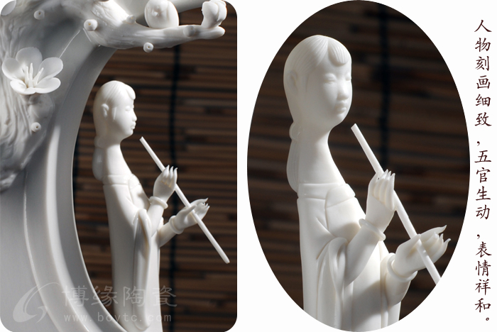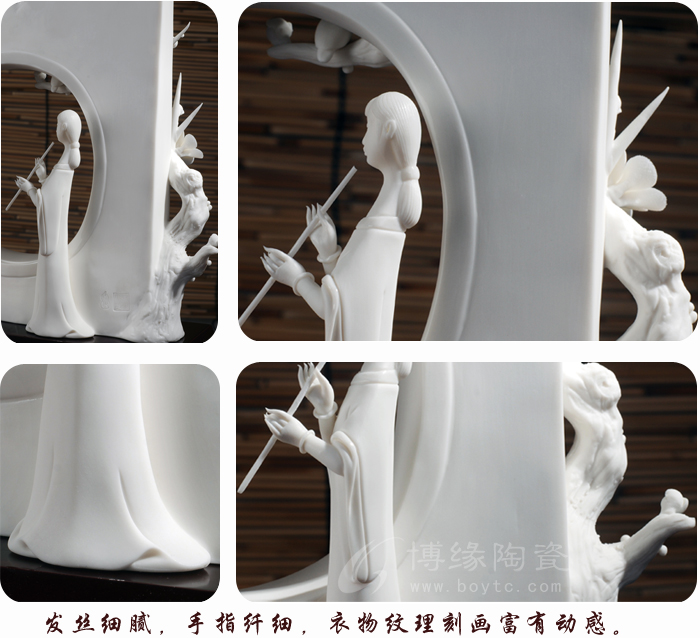 林彬彬,1987年出生在德化縣南埕鎮(zhèn)的林彬彬,人如其名,是個彬彬有禮的靦腆大男孩。2003年考入泉州工藝美術(shù)職業(yè)學(xué)院五年制大專“陶瓷大師班”學(xué)習(xí)雕塑,畢業(yè)之后繼續(xù)師從中國陶瓷藝術(shù)大師——蘇獻(xiàn)忠,2014年成立了“凝韻瓷閣”工作室。據(jù)其介紹,“凝”是取“凝聚”之意,“韻”則是“韻味”,希望自己能夠把德化陶瓷藝術(shù)最美好的“味道”創(chuàng)作好,表現(xiàn)好。其作品風(fēng)格非常唯美,帶著濃濃的古典詩情意境,仿佛是一幅立體的畫,展示了古典詩詞所營造的氛圍。
