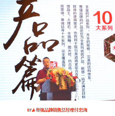 象征技術改革,具有開創(chuàng)瓷磚新時代意義的粵強鉆和極品大理石也閃亮登場于本屆財富峰會。結合粵強品牌產品硬、重的特色,極致還原天然石材紋理的新品吸引了在座每位經銷商的眼球,引起經銷商們的興趣,紛紛給予產品高度評價。