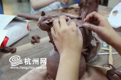 今年,陶賽的主題為“China,給你不一樣的體驗(yàn)”,主辦方希望學(xué)生們通過陶藝創(chuàng)作,讓陶泥說話,展現(xiàn)杭州的獨(dú)特韻味,表達(dá)“喜迎G20峰會(huì)”的東道主情懷。本屆大賽從3月份啟動(dòng)以來,有103所中小學(xué)校參加,選送優(yōu)秀參賽作品 278 組,經(jīng)專家初評(píng)共有53組作品、70多位中小學(xué)生入圍決賽,爭(zhēng)奪一、二等獎(jiǎng)。參加決賽的選手要按照自己選送的作品模樣,在規(guī)定的2個(gè)小時(shí)內(nèi)重新進(jìn)行制作,主要考察選手的捏塑技能、熟練程度和原創(chuàng)性。