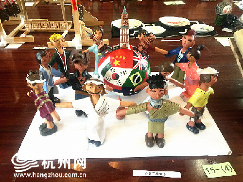 一塊再平凡不過的泥土,孩子們用雙手一按一捏,捏出了杭州的風(fēng)土人情和峰會(huì)20國的美麗風(fēng)景。荷花、三潭印月、小籠包等經(jīng)典的杭州元素與埃菲爾鐵塔、峰會(huì)20國國旗等結(jié)合,一雙巧手再現(xiàn)了家鄉(xiāng)的風(fēng)韻,栩栩如生的作品表達(dá)了對(duì)G20的美好憧憬。