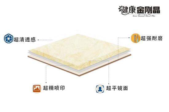 相比普通拋釉磚,健康金剛晶系列產(chǎn)品在透感與光亮度上有了極大提升。生產(chǎn)過程中添加了獨特金剛顆粒以及全新進口釉面料,從底釉、面釉、保護層等不同層面加以創(chuàng)新。產(chǎn)品經(jīng)過1250度恒溫?zé),在磚面形成無孔;砻,釉面厚度比普通拋釉磚提升了3倍。成型后的產(chǎn)品采用“硬拋+軟拋”的精拋工藝,從根本上撫平普通拋釉磚的“水波紋”倒影,使磚面真正做到平滑如鏡,有效保護磚體的同時透感十足。