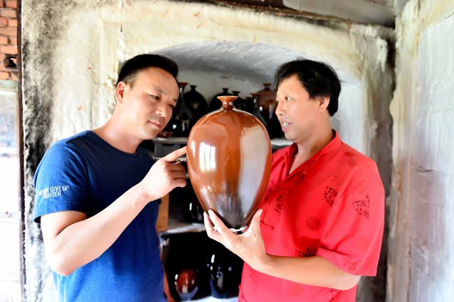 馬會昌與到訪的陽泉市收藏家協(xié)會盂縣分會會長高飛研究定窯瓷器