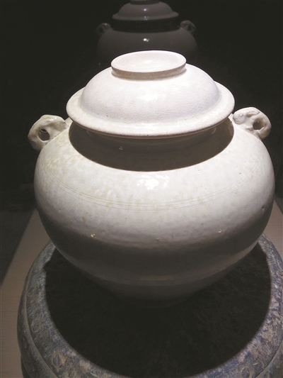在洛陽漢林古代珍藏博物館里,很多瓷器有一個共同點(diǎn),那就是:鞏縣窯出品,質(zhì)量有保證——黑瓷龍柄執(zhí)壺淳樸厚重,兔鈕白瓷二系罐釉色鮮艷,灑黃釉人首胡瓶造型別致……