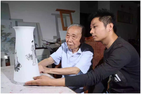 江西省高級工藝美術(shù)師傅建文與外祖父王錫良交流新作品