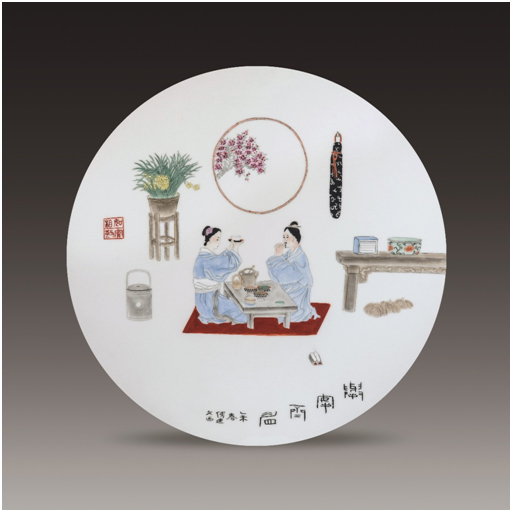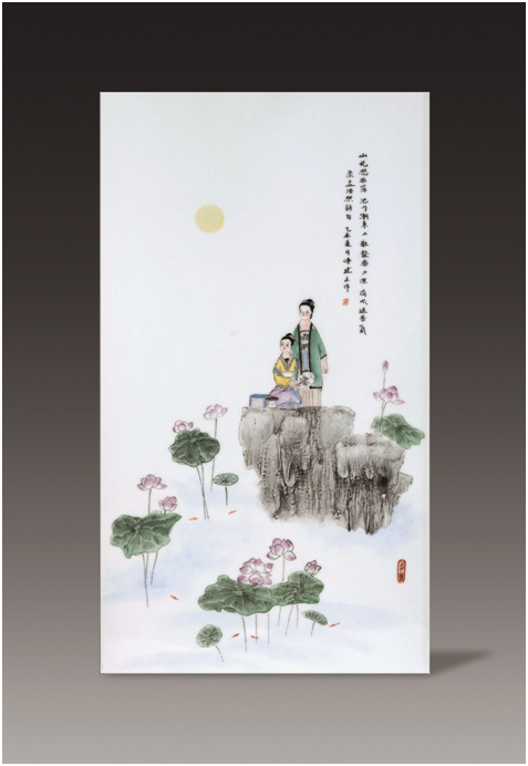 江西省高級工藝美術(shù)師傅建文作品:50×50粉彩瓷板 陸羽品茶