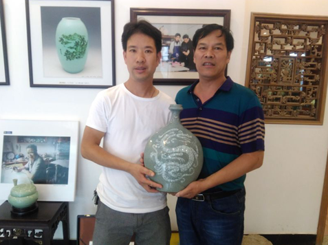 我與夏侯水平是在浙江省龍泉市,經(jīng)朋友介紹認識的。夏侯水平勤奮好學,治學嚴謹。他說做一名有實力的龍泉市傳統(tǒng)青瓷燒制技藝非物質文化遺產(chǎn)傳承人,必須多學、多練、多思。是啊,我國歷代成功的藝術家,皆是神于好,精于勤,成于悟。喜好青瓷的,不勤奮作青瓷燒制技藝,便不可能專精;能夠專精,也只能算作佳品,要達到妙品、逸品,必要有“悟”的功夫。“悟”不到者,永遠不能成為一流的