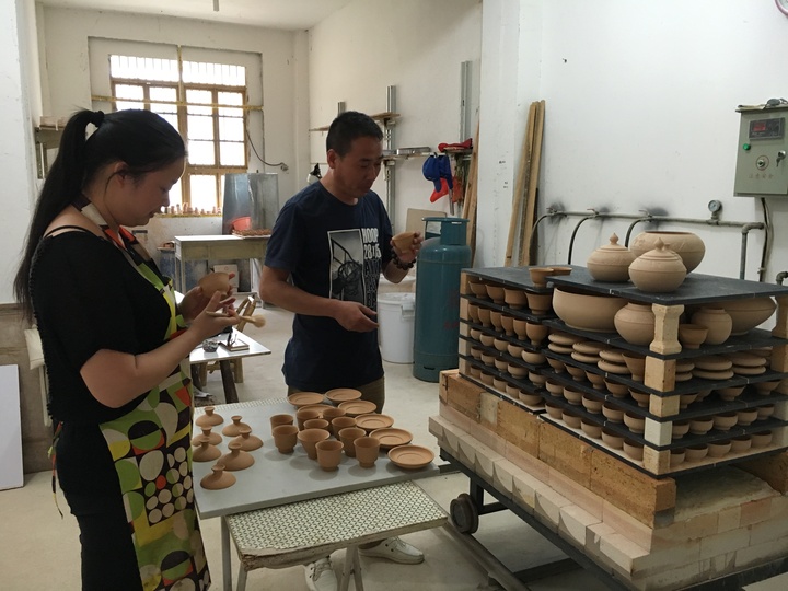 此時,正值下午2點,陽光分外灼眼,我們早已大汗淋漓,而許繼武利索地摘下圍裙,帶著著我們?nèi)タ纯,他如何燒窯。