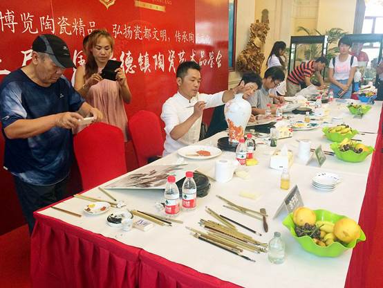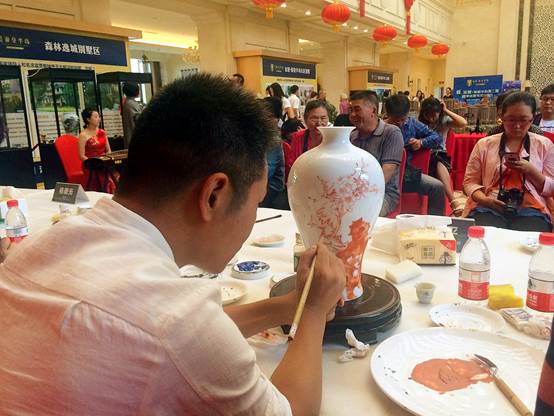 今日一早國(guó)寶級(jí)的五大陶瓷名家剛到齊,活動(dòng)現(xiàn)場(chǎng)就急速升溫,客戶們紛紛不由自主的走近欣賞陶瓷名家現(xiàn)場(chǎng)作畫,案桌立刻就被圍了個(gè)水泄不通,還有很多熱情的客戶爭(zhēng)相與名家大師合影留念,現(xiàn)場(chǎng)詢問(wèn)購(gòu)買的客戶也絡(luò)繹不絕,看來(lái)中國(guó)陶瓷藝術(shù)已經(jīng)被越來(lái)越多的人所認(rèn)可。下面咱們來(lái)欣賞下陶瓷大師現(xiàn)場(chǎng)作畫的動(dòng)人風(fēng)采吧!