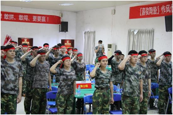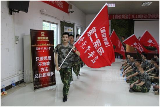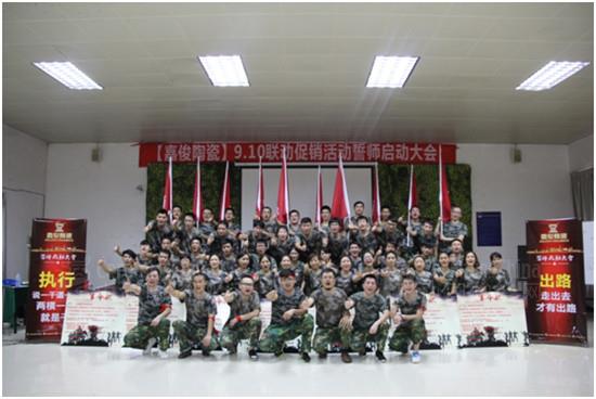 8月16日-8月18日,嘉俊陶瓷在廣州花都開(kāi)展為期兩天兩夜封閉式、軍事化的廣東區(qū)域聯(lián)動(dòng)促銷(xiāo)活動(dòng)誓師啟動(dòng)大會(huì)。來(lái)自廣東番禺、南沙、英德、高州、中山、惠州、淡水、興寧、塘廈、常平等地的經(jīng)銷(xiāo)商老板及其員工,總部業(yè)務(wù)和市場(chǎng)部人員共60余人。