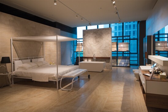 手握精品,何乾又在經(jīng)營模式上實(shí)現(xiàn)了一次領(lǐng)先全業(yè)的變革。他抓住消費(fèi)者開始講求瓷磚風(fēng)格、整體家居環(huán)境配套這一市場痛點(diǎn),主導(dǎo)金意陶“賭”了一把:拿出前一年所有利潤,投建了國內(nèi)第一座景觀式展廳——金意陶“思想館”。