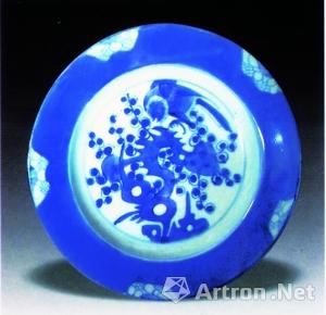 歷史上,福建德化窯陶瓷紋飾中“喜上眉梢”也是常用的題材,民間藝人們以所喜愛(ài)的梅花諧音“眉”字,畫(huà)喜鵲站在梅花枝梢,即組成了“喜上眉(梅)梢”的吉祥圖案。民間多以喜鵲喻喜慶之事,“梅”與“眉”同音,故又作“喜上眉梢”,描述人逢喜事,神情洋溢的樣子。這件清代德化窯青花藍(lán)地開(kāi)光紋折腰“喜上梅梢”紋瓷盤(pán)片,民間收藏),高5.4厘米、口徑23厘米、底徑8.5厘米,為清代福建德化窯器物。器呈寬板沿、淺腹、圈足、撇口,瓷盤(pán)通體施以白釉,胎體致密,釉色白中閃青,青花設(shè)色淡雅逸麗,仿若春風(fēng)拂面,醉人心扉:圖案花紋清晰,濃淡相間,紋樣微凸,具有很好的視覺(jué)效果。青花色澤藍(lán)中閃灰。色料鮮艷明亮,傳遞出一種靈動(dòng)率真之氣:瓷盤(pán)裝飾紋樣隨作者的匠心而安排,莫不自然質(zhì)樸,恰到好處。
