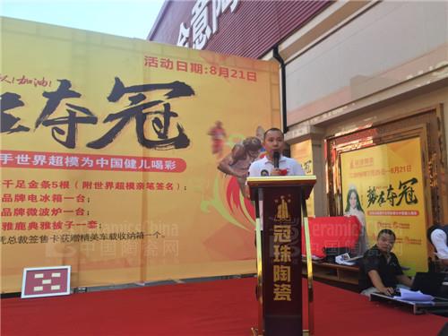 8月21日下午,河北保定和風日麗、陽光明媚,建材市場上多場促銷大戰(zhàn)同時上演。鑫豐建材市場冠珠陶瓷更是熱鬧非凡,冠珠大型簽售活動以震撼全城的氣勢在此隆重舉行,吸引了300多位市民參加,再創(chuàng)佳績。