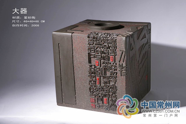 王亞平此次參評的作品為組合件:《萬八千歲》《大器》《秋月春風》。據(jù)介紹,王亞平從事紫砂、彩陶藝術創(chuàng)作和研制近40年,他的陶藝作品往往用最純樸的紫砂泥料制成最簡潔的器皿造型,借助書法藝術抒情達意。