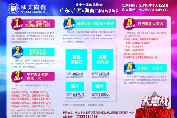為了傳承和延續(xù)歐美品牌總部瓷磚采購(gòu)節(jié)的斐然成績(jī),創(chuàng)造良好的業(yè)績(jī),續(xù)寫逆市狂銷的傳奇,達(dá)成2016年品牌營(yíng)銷目標(biāo),9月5日下午1點(diǎn),歐美陶瓷第十一屆廣東&廣西&海南廠家瓷磚采購(gòu)節(jié)戰(zhàn)前動(dòng)員大會(huì)在總部多媒體會(huì)議室隆重舉行,這預(yù)示著一場(chǎng)陣容強(qiáng)大、席卷廣東、廣西、海南三省的抱團(tuán)惠戰(zhàn)正式拉開(kāi)帷幕!