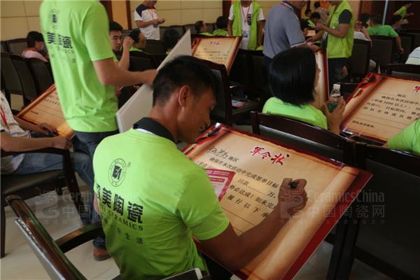 其后,楊總針對(duì)本次省聯(lián)動(dòng)團(tuán)購(gòu)活動(dòng)做出了清晰明確的工作指導(dǎo),掃除了經(jīng)銷商們心頭的疑慮,使活動(dòng)參與者的步伐更加堅(jiān)定不移。緊接著經(jīng)銷商隊(duì)伍劃分軍團(tuán)、戰(zhàn)區(qū)立約PK等儀式更把會(huì)議推至新的高潮,按地區(qū)劃分PK戰(zhàn)區(qū)有利于歐美團(tuán)隊(duì)凝聚力的充分體現(xiàn)、團(tuán)隊(duì)執(zhí)行力的有效調(diào)配以及對(duì)當(dāng)?shù)厥袌?chǎng)進(jìn)行針對(duì)性爆破。營(yíng)銷一線的戰(zhàn)士們?cè)趩?dòng)大會(huì)上高漲的團(tuán)隊(duì)氛圍,那聲聲震耳的吶喊聲、意志堅(jiān)定的眼神和威風(fēng)凜凜的團(tuán)隊(duì)風(fēng)采堅(jiān)定地表達(dá)了歐美陶瓷的銷售狼虎之獅和終端領(lǐng)袖精英們勢(shì)要完成本次團(tuán)購(gòu)銷售任務(wù)的信心與決心!其后,各組長(zhǎng)帶領(lǐng)滿腔熱血的銷售戰(zhàn)士們簽下軍令狀,雷鳴戰(zhàn)鼓標(biāo)志著三省大型聯(lián)動(dòng)正式蓄勢(shì)待發(fā)!