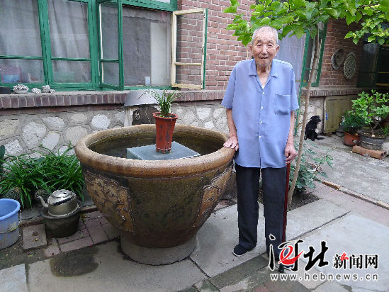 這口蓮花大缸的主人是范寶全老人,范老先生今年94歲高齡了,卻身體硬朗,思維清晰,精神矍鑠。范寶全老人是明永樂(lè)二年從山西移民到唐山的陶瓷世家范家的后代,論起來(lái)為十三世孫。